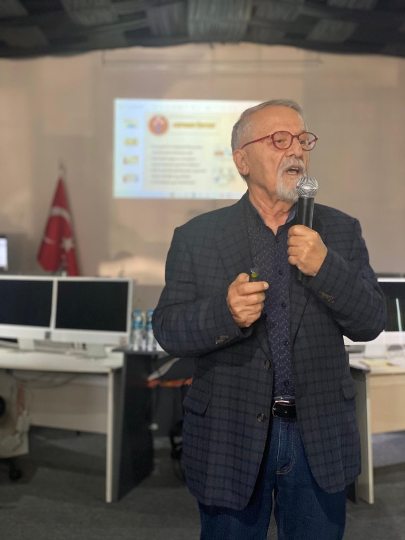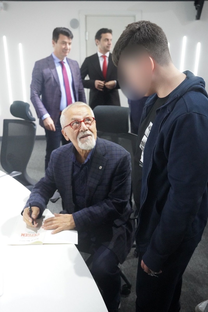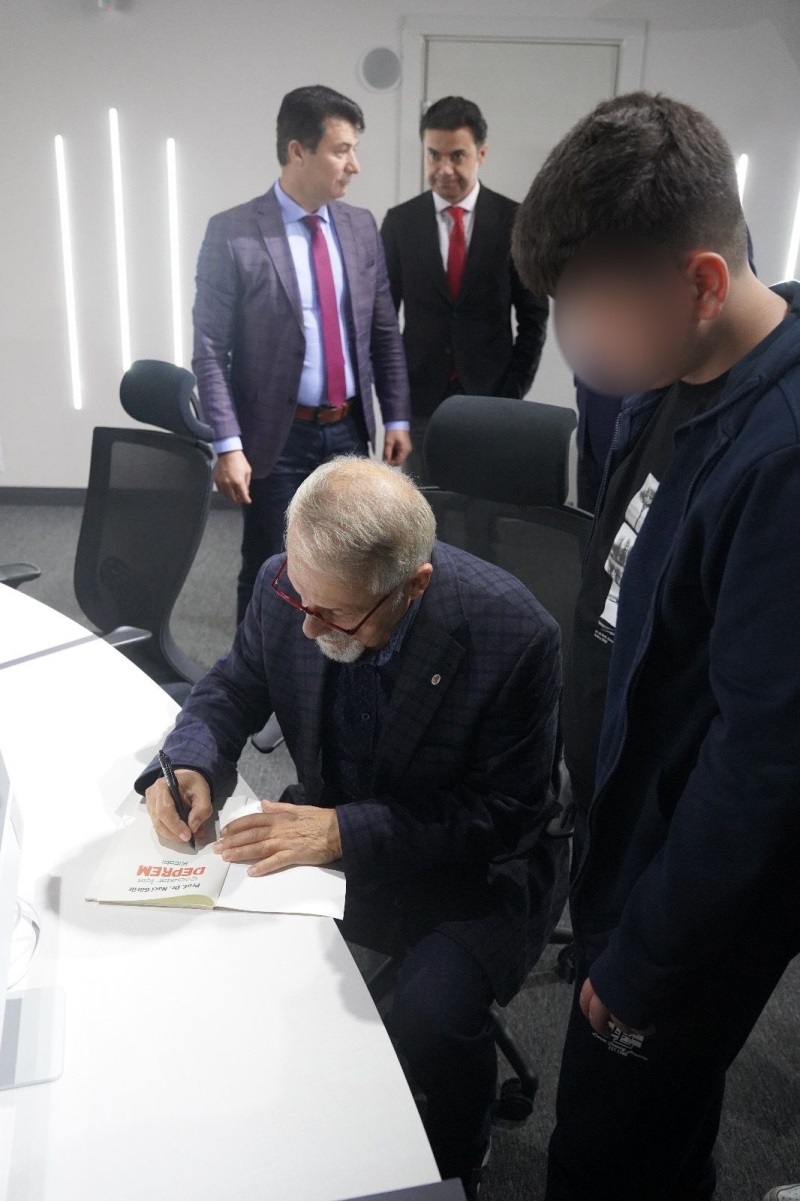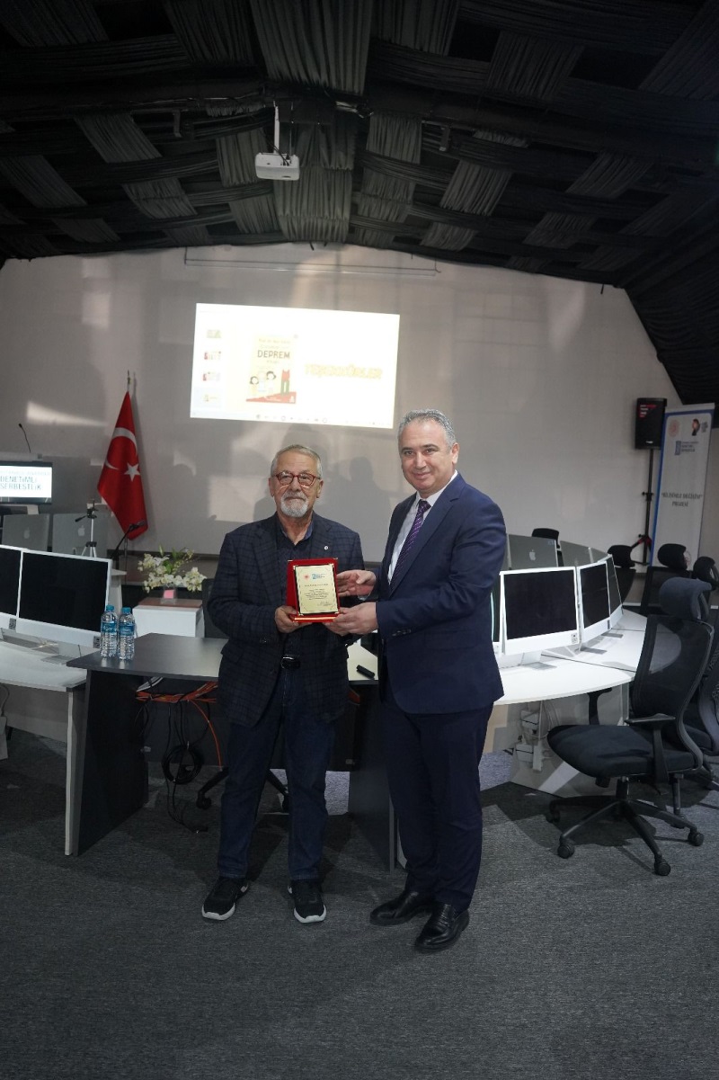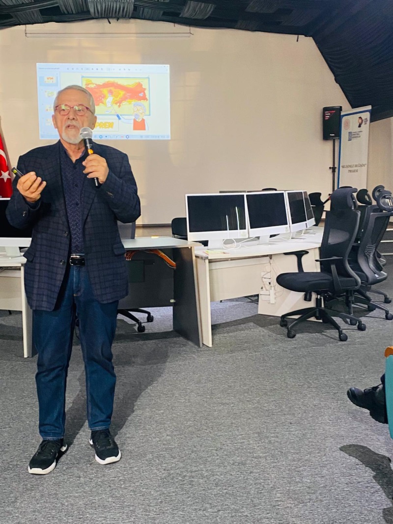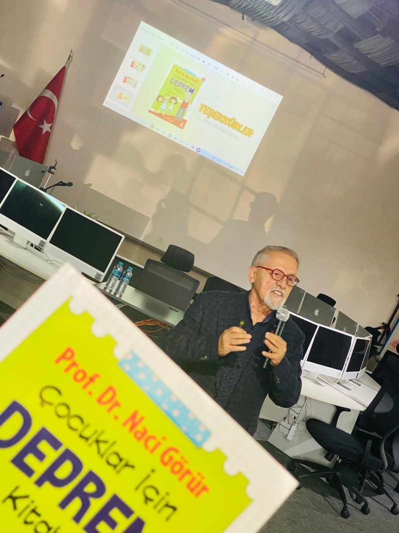 Programın ikinci bölümünde Prof. Dr. Naci Görür, deprem bilinci, yer bilimi ve toplumsal farkındalık üzerine yaptığı konuşmasında, “Bilimle donanmış, bilinçli bireyler güvenli bir geleceğin temelidir.” vurgusunu yaptı.